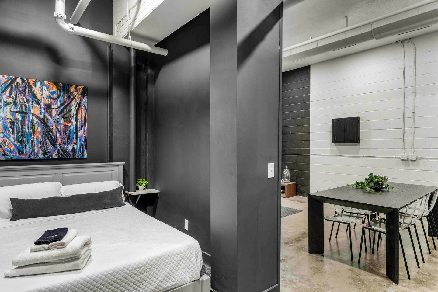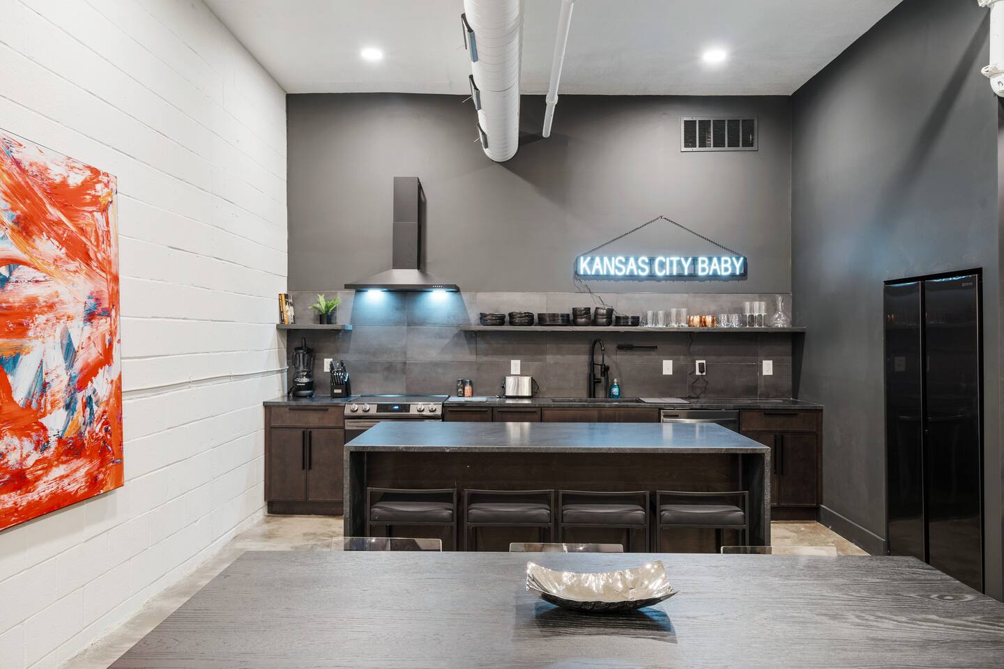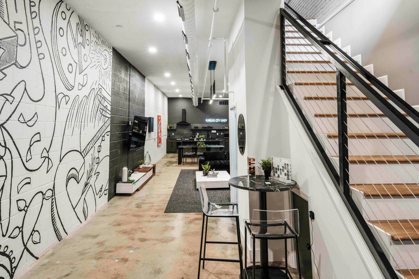 Our prime location places you just steps away from all major attractions and happenings in the Crossroads Arts District. This stunning Airbnb offers an unmatched fusion of artistic charm and contemporary elegance, providing a truly unique and unforgettable stay. With over 3000 square feet of open-plan living space, this is a haven for those seeking both comfort and style. The loft's high ceilings and contemporary charm, create an inviting and uplifting atmosphere. Elevate your stay with us!