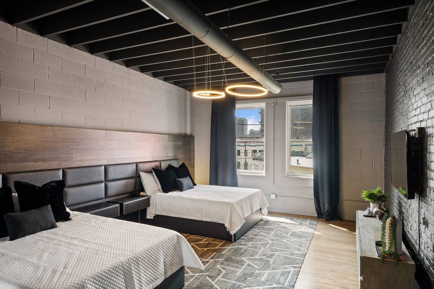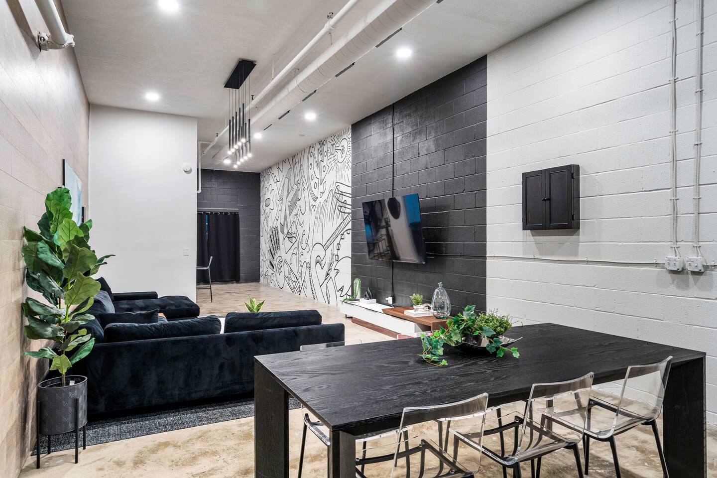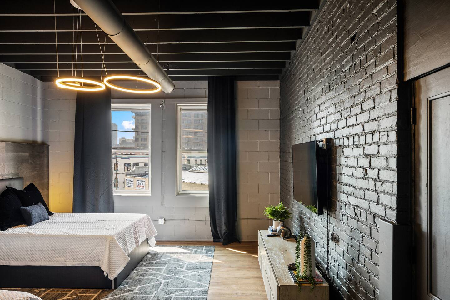 Our prime location places you just steps away from all major attractions and happenings in the Crossroads Arts District. This stunning Airbnb offers an unmatched fusion of artistic charm and contemporary elegance, providing a truly unique and unforgettable stay. With over 3000 square feet of open-plan living space, this is a haven for those seeking both comfort and style. The loft's high ceilings and contemporary charm, create an inviting and uplifting atmosphere. Elevate your stay with us!